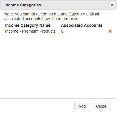 You cannot remove an Income Category until all accounts in that category are reassigned.